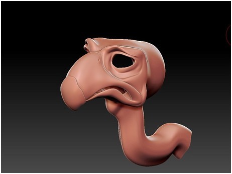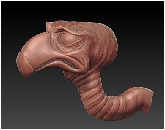 我開始以同樣的方式繪制守財奴的草圖:從頭部。我開始在maya中畫簡單的形狀,看上去像一只鳥的頭。然后模型導入到Zbrush中開始雕刻吝嗇鬼埃比尼澤初期版本,不斷修改設計,直到得到令我滿意的結果(如圖3)。