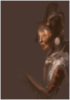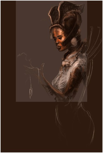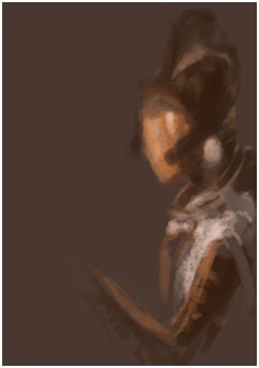 在PS中,我使用了一個簡單的圓形筆刷,并開始畫草圖,描繪顏色(圖01 - 05)。一個黑人女孩的形象慢慢的顯現(xiàn)出來。