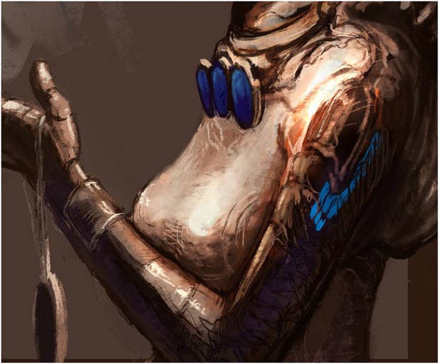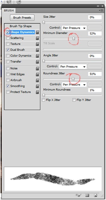 當(dāng)人物的形象刻畫好后,我知道我想要在什么地方添加更多的細(xì)節(jié)。為而來做到這一點,我創(chuàng)造了一個自定義的筆刷,這是我在添加細(xì)節(jié)時的一個習(xí)慣性動作。你可以在圖06 – 07中看到我制作的細(xì)節(jié)。你可以嘗試著按這個設(shè)置給每一個獨特的角色添加細(xì)節(jié)。