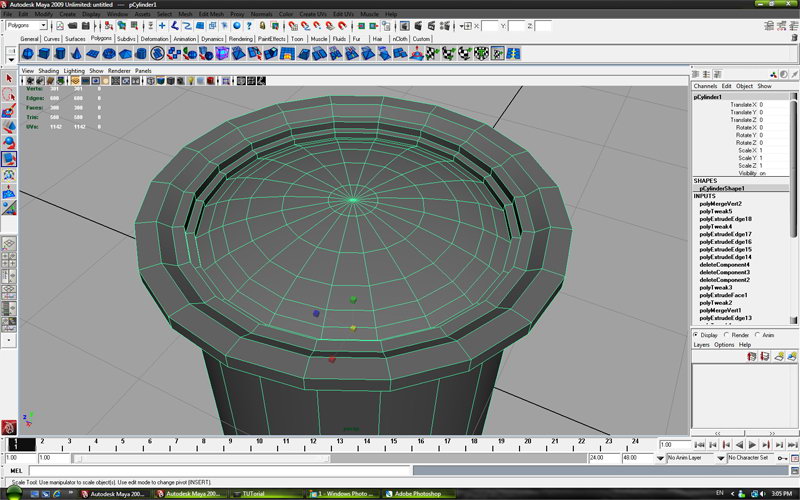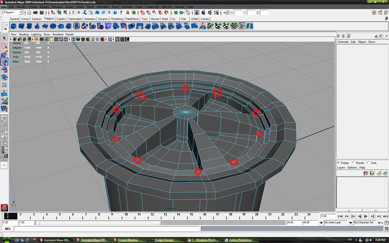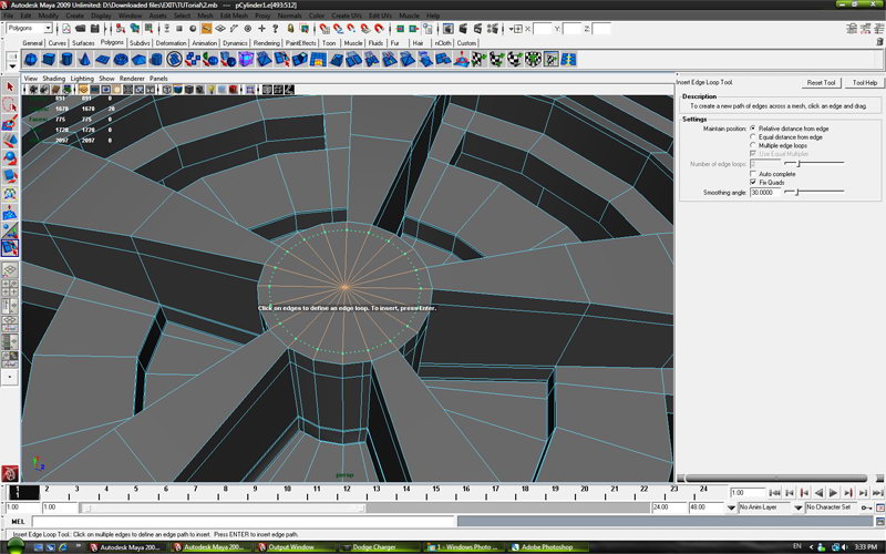 Again add edges with "Insert Edge Loop Tool" on each hole.