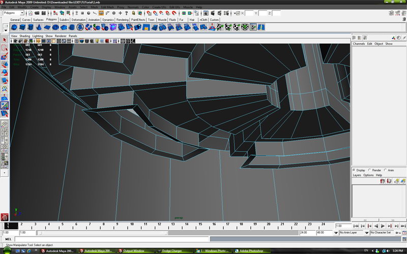 當你的模型狀態如下所示時改變到選擇點模式。When your model starts to look like on this picture change to vertex mode.