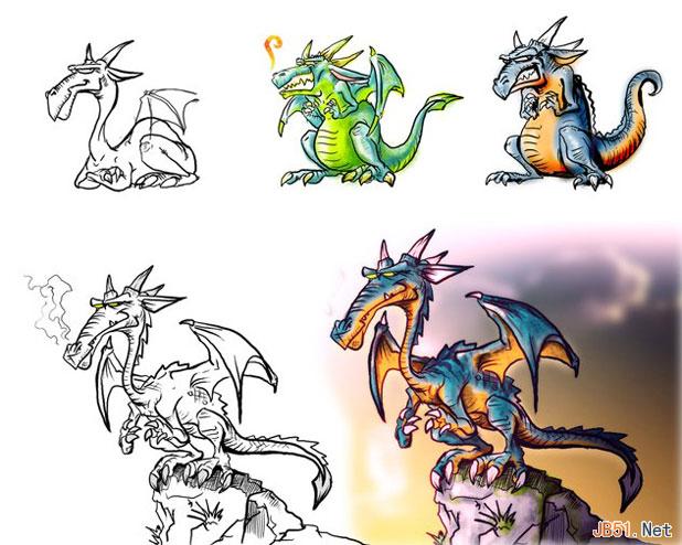 這張圖是為一個(gè)網(wǎng)站制作的。在繪制草圖的時(shí)失敗了幾次后,我想到了一條看起來(lái)很調(diào)皮的龍的樣子(圖01)。我沒(méi)有辦法在比賽規(guī)定的時(shí)間內(nèi)完成這張圖,但是我非常滿意自己目前的進(jìn)展,而且我打算把這條龍繼續(xù)制作下去。