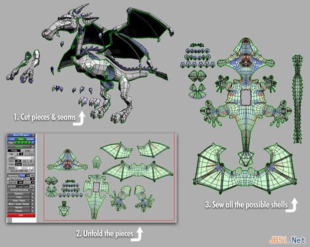 完成的模型輸入到UV面板中。如果可能的話,我會(huì)花大部分的時(shí)間在單獨(dú)的外殼中展開(kāi)模型,但是在這個(gè)教程中我需要把翅膀放在另外的外殼里面,角色的其他部分和最后的東西主要是在Maya中輸出外殼(圖06和07)。我把模型輸入到中做細(xì)節(jié),用傳統(tǒng)的阿爾法和標(biāo)準(zhǔn)工具添加皺紋,縮放和折疊,不斷嘗試保持某些部分的夸大(比如胸膛,背部,腹部等等),精細(xì)其他的部分(臉部,翅膀皮膚)使所有的東西都有統(tǒng)一的風(fēng)格。finished Tool細(xì)分為級(jí)別6(圖09)。