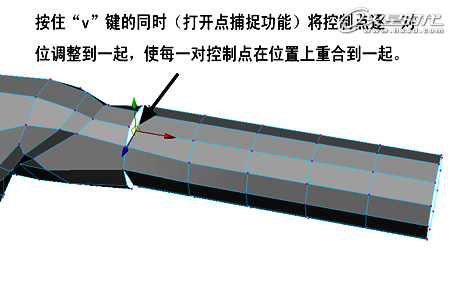使用Merge命令,將捕捉到一起的控制點逐一合并,注意上一步中捕捉到一起的控制點只是在位置上重合,至于使用Merge命令以后,才真正合并為一個控制點,結果如圖。(圖05)
