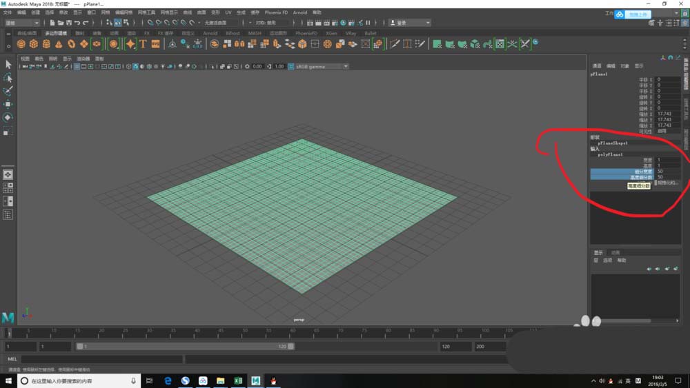 3、為了能夠更好的展現出雕刻的細節,我們將網格劃分變得更多一些,例如圖中所示,高度和寬度細分變成:50和50