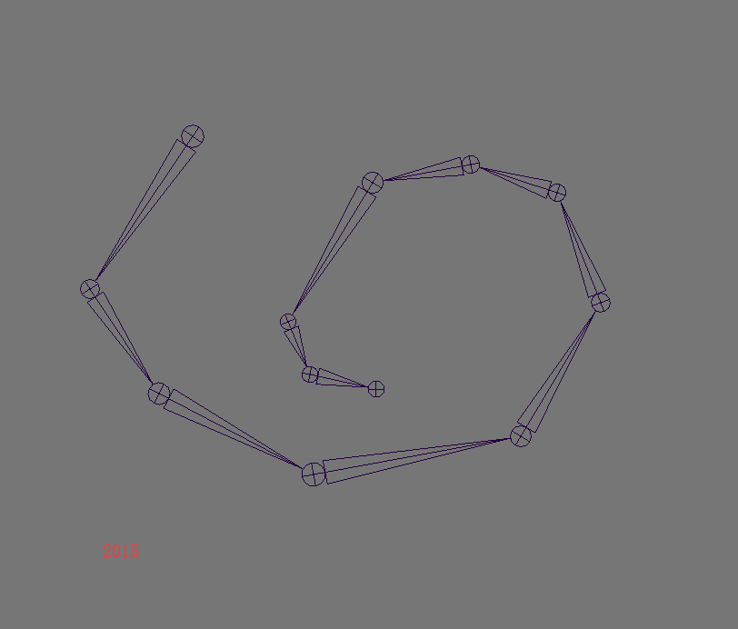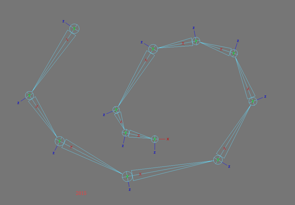 1、打開Maya創建一組不規則骨骼列,如果是標準的一行或者一列骨骼,Maya是不會出錯的。
