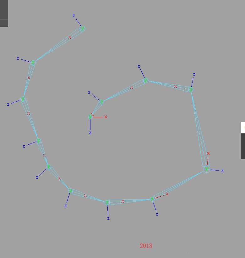 3、我們會發現最后一個骨骼坐標有問題,如果選擇坐標的話15版的可以選中并且能修改,但是18版的不能直接選中修改