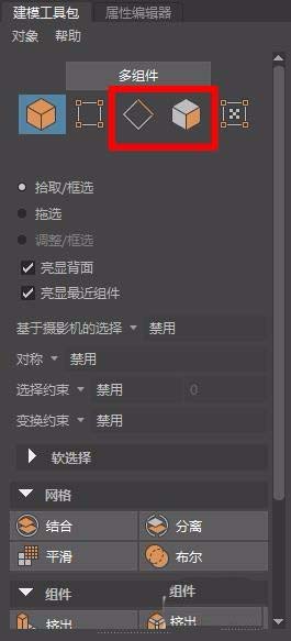 2、在建模工具包點擊邊選擇或面選擇(F10或F11),不要點擊頂點選擇或多組件