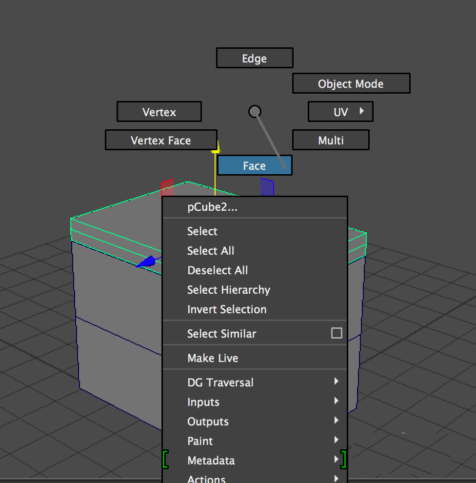 4、在上面的模型上右鍵切換到“面”【Face】,選擇最上面的那個面。