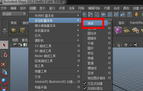 1、打開maya,新建場景,然后用多邊形工具創(chuàng)建一個球體,如圖: