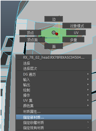4、對已經(jīng)添加好基礎(chǔ)色的模型點擊右鍵不放,選擇“面”。按住左Shift不放,選擇要加其他顏色的面(可多選)。再點擊右鍵不放,選擇指定新材質(zhì),各項異性,選擇黃色作為眼睛的顏色。按照此方法再給所有細(xì)節(jié)添加顏色。對整體上色和局部上色到此為止。