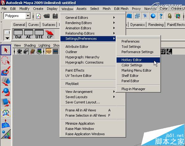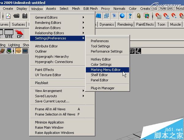 第3步、選擇Window > Settings/Preferences > Marking Menu Editor