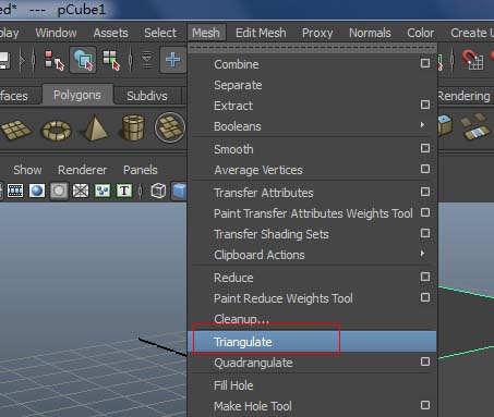 2、在polygons頁面下,找到mesh下的Triangulate,模型被轉換成三角面。