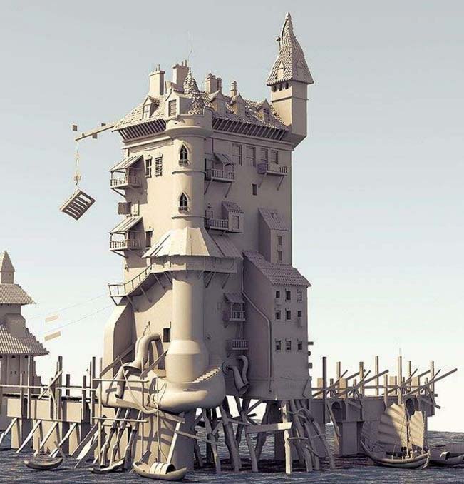 3、我們在這一步操作下進行規整所有的物體,再次建立長方體。用來做外墻裝飾,以作為完工操作,大致完成了 剩下的隨便配點就行