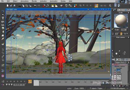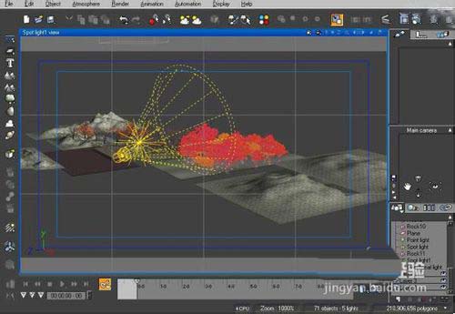 根據鏡頭動畫需要,在鏡頭范圍內完成場景元素的布置:地形,植被,大氣,燈光。