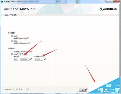 4、輸入序列號與密鑰,點擊下一步。