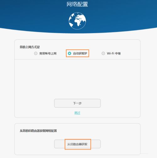 ü 當路由器檢測到您的上網環境為自動獲取 IP 時,您可以嘗試從舊路由器獲取(舊路由器可以正常上網)。