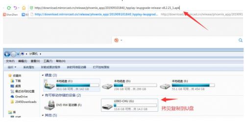 第1步.在樂播投屏官網或公眾號找客服索要“樂播投屏升級專用版”下載地址,然后用電腦打開這個網址,把安裝包下載到電腦,然后把“樂播投屏升級專用版”拷貝到您U盤中。
