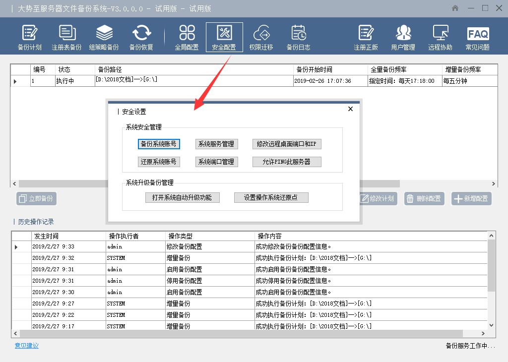 同時,本系統不僅集成了“注冊表備份”、“組策略備份”,而且還在“安全配置”里面內置了很多專門針對服務器安全保障的功能。如下圖: