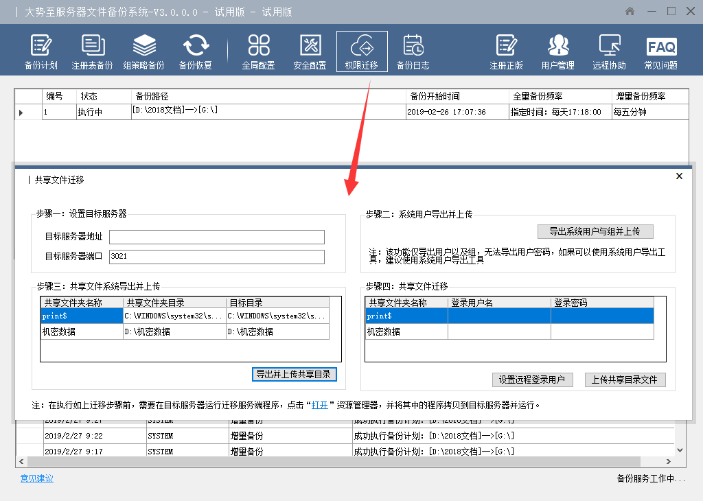 9、可以將舊服務器的共享文件及其對應的用戶訪問權限導出備份并完整導入到新的服務器上,避免了升級服務器重新設置共享文件權限的繁瑣工作;