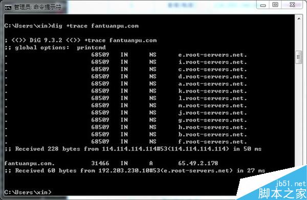 3、DNS根服務器給出范圍:該域名由.com.cn區域管理,給你.com.cn域服務器地址ns.cernet.net.