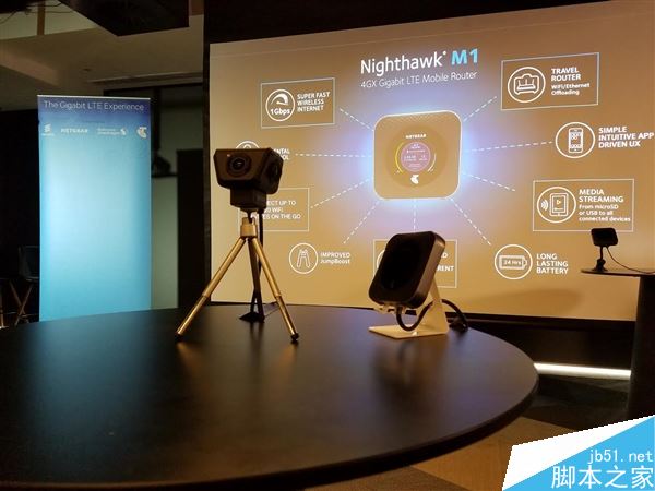 演示中使用的移動路由器是網件Nighthawk M1,整合高通驍龍X16千兆基帶,支持四載波聚合、256QAM下載,可連接最多20個Wi-Fi設備,續航時間最長24小時。