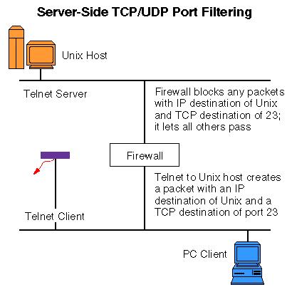 比如,默認的telnet服務連接端口號是23。假如我們不許PC客戶機建立對UNIX計算機(在這時我們當它是服務器)的telnet連接,那么我們只需命令防火墻檢查發送目標是UNIX服務器的數據包,把其中具有23目標端口號的包過濾就行了。這樣,我們把IP地址和目標服務器TCP/UDP端口結合起來不就可以作為過濾標準來實現相當可靠的防火墻了嗎?不,沒這么簡單。