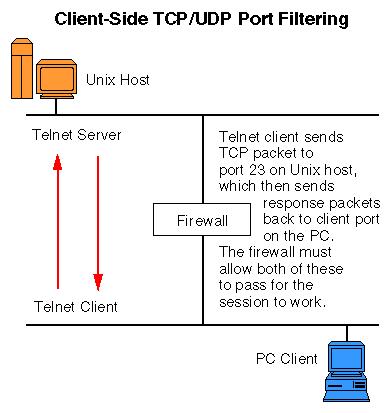當PC客戶機向UNIX計算機發起telnet請求時,PC的telnet客戶程序就產生一個TCP包并把它傳給本地的協議棧準備發送。接下來,協議棧將這個TCP包“塞”到一個IP包里,然后通過PC機的TCP/IP棧所定義的路徑將它發送給UNIX計算機。在這個例子里,這個IP包必須經過橫在PC和UNIX計算機中的防火墻才能到達UNIX計算機。