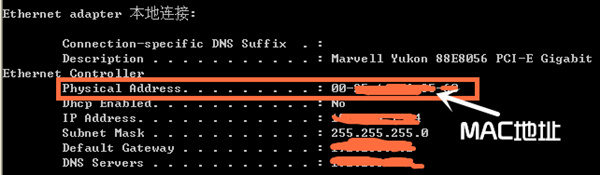方法一:通過命令行查看電腦網(wǎng)卡的MAC地址