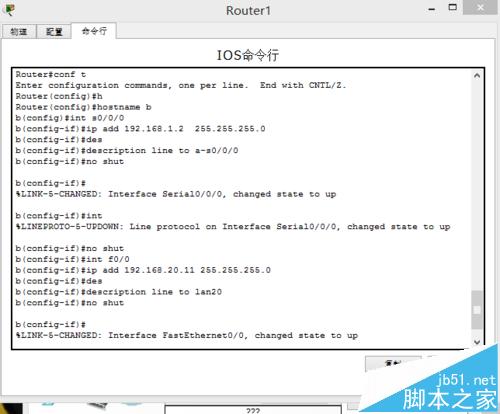 同理路由器b也是相同命令,如下圖所示: