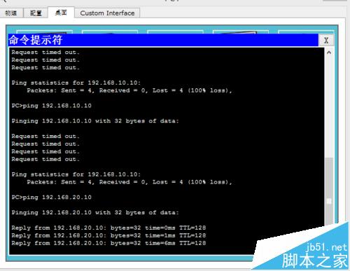 3、配置路由器之前,用ping命令ping一下各電腦之間的連通性,是ping不通的,如下圖所示:
