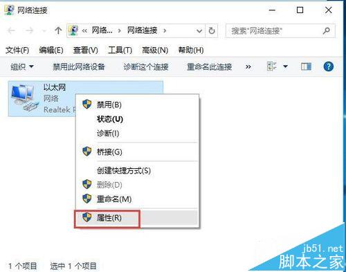 3、然后右鍵點(diǎn)擊你在使用的網(wǎng)絡(luò),然后點(diǎn)擊“屬性”按鈕。