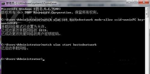 繼續在命令提示符中運行:netsh wlan start hostednetwork
