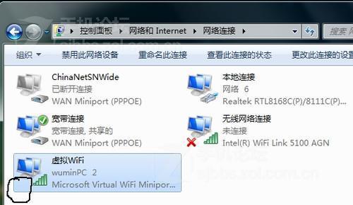 開啟成功后,網絡連接中會多出一個網卡為“Microsoft Virtual WiFi Miniport Adapter”的無線連接2,為方便起見,將其重命名為虛擬WiFi。若沒有,只需更新無線網卡驅動就OK了。