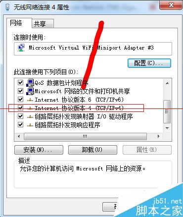 2、選中無線網(wǎng)絡(luò)連接,單擊右鍵,選擇屬性,出現(xiàn)如下圖1,然后雙擊紅色框框,出現(xiàn)圖2