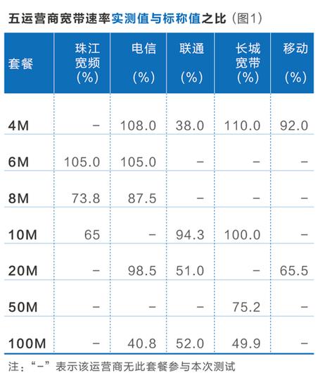 2015年3月,《消費者報道》在廣州市內征集了110位志愿者,利用工信部電信研究院的寬帶測速平臺,對廣州市的五家主流寬帶運營商——電信、聯通、移動、長城寬帶與珠江寬頻進行了一次寬帶測速活動。