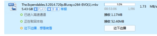 同一個資源使用迅雷下載的下載速率大幅提升,如圖: