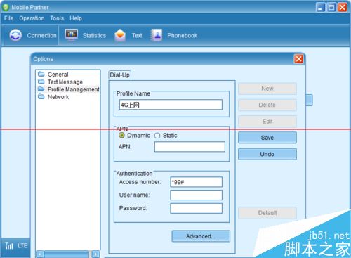 打開4G客戶端tools下的option界面,選擇profile management如圖: