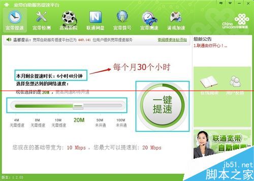 廣東聯通光纖寬帶用戶均可免費提速至20M-100M的速度,每月可以累計提速30小時。本經驗就與大家分享如何免費自助提速。