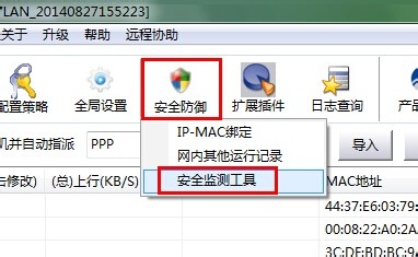 在其主界面中,點擊“安全防御”->“安全檢測工具”項。