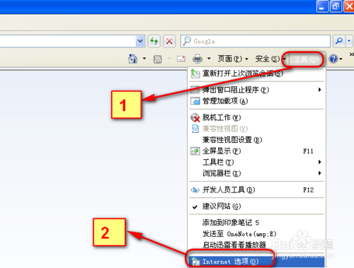 6、在瀏覽器的右上角找到“設置”選項,點擊之后選擇“Internet 選項”,如圖所示。