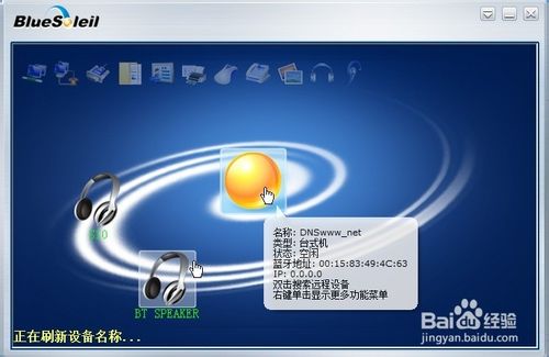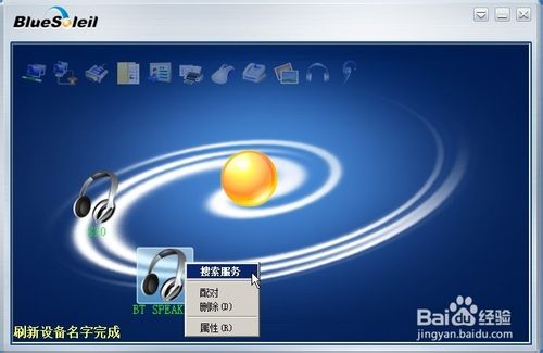 5、不過沒關系,一般電腦的藍牙系統會自動刷新找到藍牙設備名稱的(如圖5),如果它很久都不刷新出設備名,就右鍵單擊這個設備,點“獲取設備名稱”,注意,沒有設備名稱是無法連接它的哦;