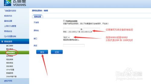 公司有一條100M和 4M 光纖,無線設備(筆記本、手機)可以通過無線交換機聯網使用,現在的要求是,讓所有無線設備走4M光纖路線,100M光纖為公司內部使用,如何設定路由器?