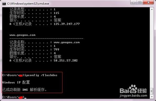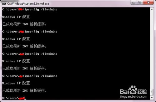 5、如果一次刷新沒有用,可以多次 輸入ipconfig /flushdns命令 進行刷新。