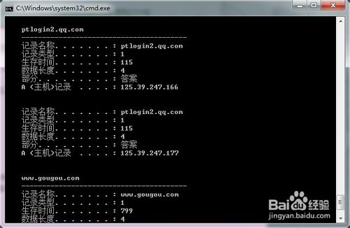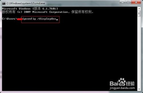 2、在命令窗口輸入 ipconfig /displaydns 命令。 查看本機已經緩存的dns信息。