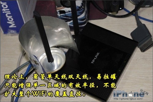 無線路由器的天線原本發射的是360度的球面波,套上易拉罐之后,易拉罐就能將電磁波向180度集中。易拉罐的內表面反射了無線電波,加強了天線的發射和接收信號的能力,把分散的信號集中到一個方向,最終起到了一個使電磁波更集中的作用。