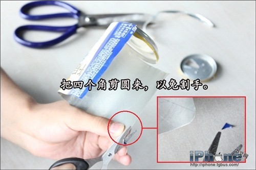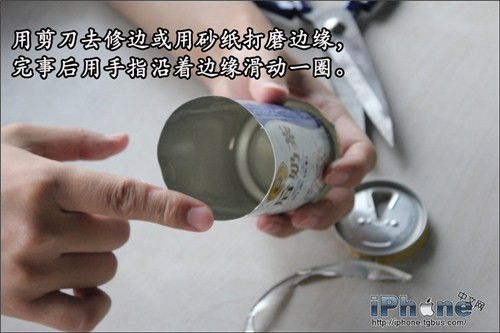 步驟六:將頂部和底部剪開的鐵皮修一修,以免割破手指。