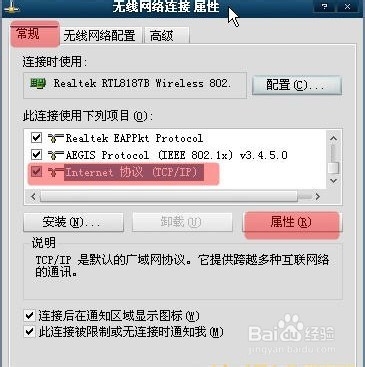 右鍵單擊無線網絡連接--屬性--常規 --Internet協議(TCP/IP)--屬性--使用下面的IP地址 (IP 地址填192.168.0.1子網掩碼 255.255.255.0)-- 確定