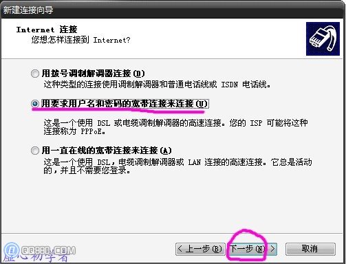 第六步:用要求用戶名和密碼的寬帶連接來連接