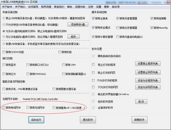 圖:大勢至禁用U盤軟件禁止無線網(wǎng)卡使用的功能